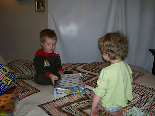 Hot Chocolate parties with Daddy. Of course Ethan wanted to do this as well, so he went and got his helmet. I think this helps him feel more manly....